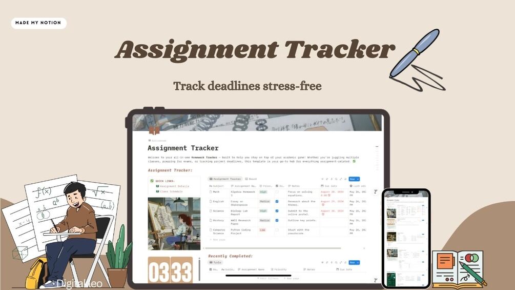 The Assignment Tracker helps you stay consistent, meet deadlines, and improve your academic performance—all while making studying more manageable and less overwhelming.