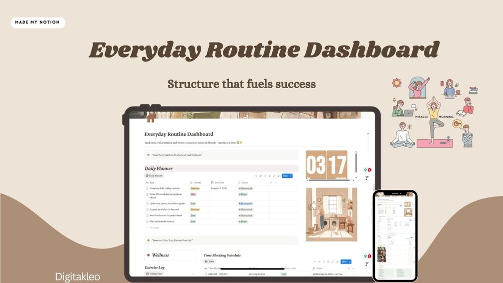 The Everyday Routine Dashboard helps you stay consistent, productive, and mindful—turning small daily actions into long-term transformation.