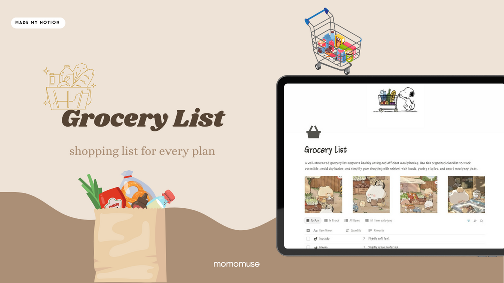 🛒Grocery List Template – Notion Checklist for Healthy & Smart Shopping